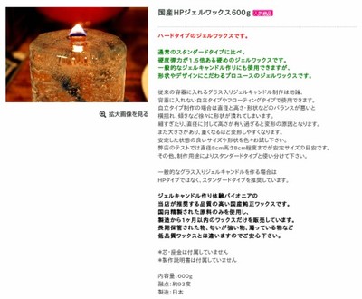 「ジェルワックス ハード キャンドル」の画像ギャラリー、詳細は各画像をクリックしてください。